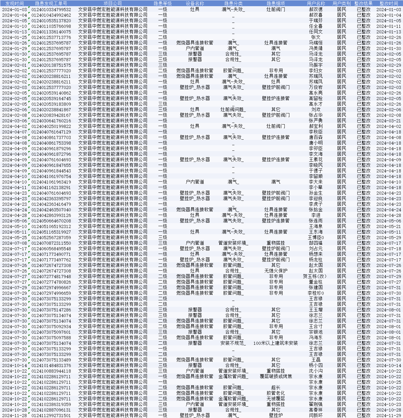 2024年安检隐患情况